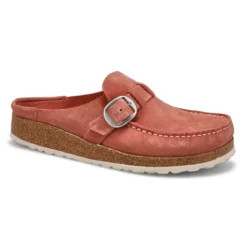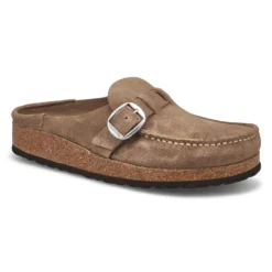 Sporty moc toe Buckley Casual tea clog from Birkenstock is casual and comfortable. The unique wrap around upper is one piece that sits inside the cork, cradles your foot and feels good barefoot too. Beautiful suede upper with a cork footbed is contoured to support your arches to ensure even weight distribution and proper posture.
