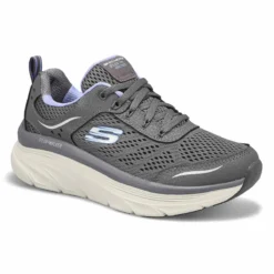 Amazing support and cushioning for long walks combines with sleek sporty style in the D’Lux Walker Star Stunner navy sneaker from Skechers. Featuring a soft engineered mesh fabric upper in a lace up athletic comfort walking sneaker with stitching and overlay accents. Well cushioned Skech-Foam midsole, Air Cooled Memory Foam insole for added comfort.